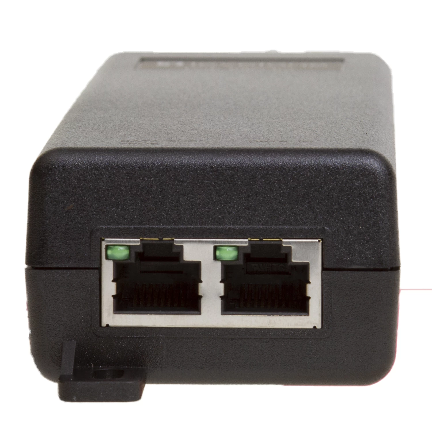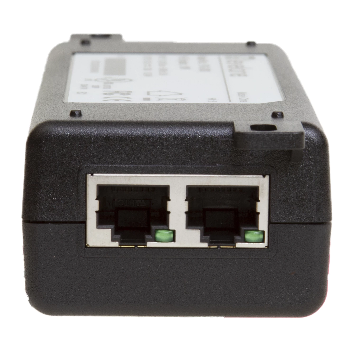 The 74X5-07112 is a Power over Ethernet Injector with one Ethernet Input (data only) port and one Output (data power) port that is designed for small or medium network environments. This product can convert standard 100~240V/AC power into low-voltage DC that runs over existing LAN cable to power up IEEE 802.3af compliant network accessories. It also features PoE awareness to verify whether the network device receiving power is IEEE 802.3af compliant, or only the data will be sent through LAN cable. By adding a PoE Splitter (74X5-02112) to existing non-PoE networking equipment, installing networking products such as Access Points and IP cameras can easily be performed. Wireless device deployments are easily located without the need for power outlets and network administrators do not need to use AC power adapters anymore. Device speed is limited to 10/100 Mbps, it can be used on a Gigabit network, however, that leg will be reduced in speed.