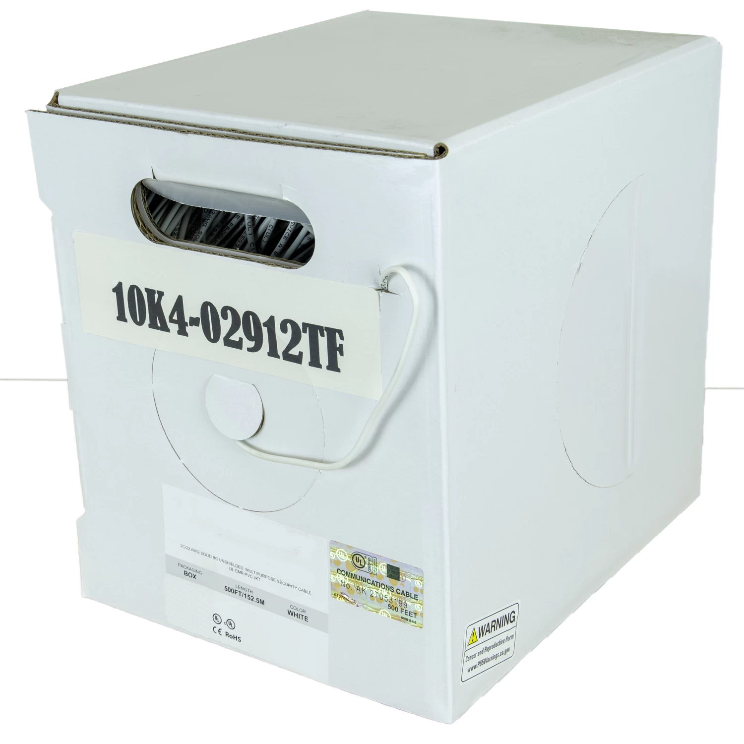 Our 500 foot white 22 AWG (American Wire Gauge) 2 conductor solid security/alarm wire comes in easy to use pull boxes. This wire is CM / in-wall rated; it is not intended for plenum or riser situations.