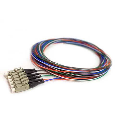 Manufactured with Corning fiber, this 900um pigtail features Multimode OM2(50/125) 6 LC/PC connectors and a 3-meter length. The 6 fibers are color coded to the industry standard: Blue, Orange, Green, Brown, Slate, and White. This pigtail is designed for use for high fiber count splicing applications. The black boot on this pigtail denotes a Multimode/OM2 cable. This cable has a typical insertion loss of 0.4dB(max).