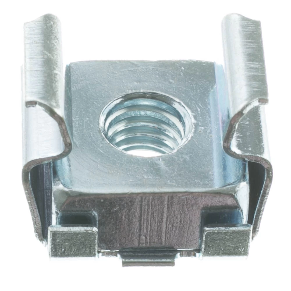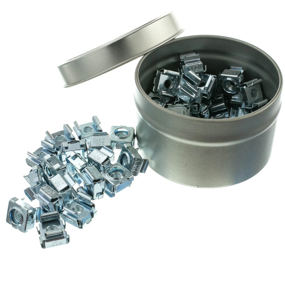 These 10-32 Cage Nuts come in a quantity of 50 pieces and are used to install rackmount equipment into server rack cabinets, 4-post racks, wall mount cabinets and racks, and 2-post racks. Cage nut style rails are often referred to as universal mounting rails, which are the most common type of rails used today. If a rack or cabinet has cage nut style rails or universal mounting rails, they will require cage nuts. The thread size of the cage nut and the thread size of the screw must be the same to properly install rackmount components.