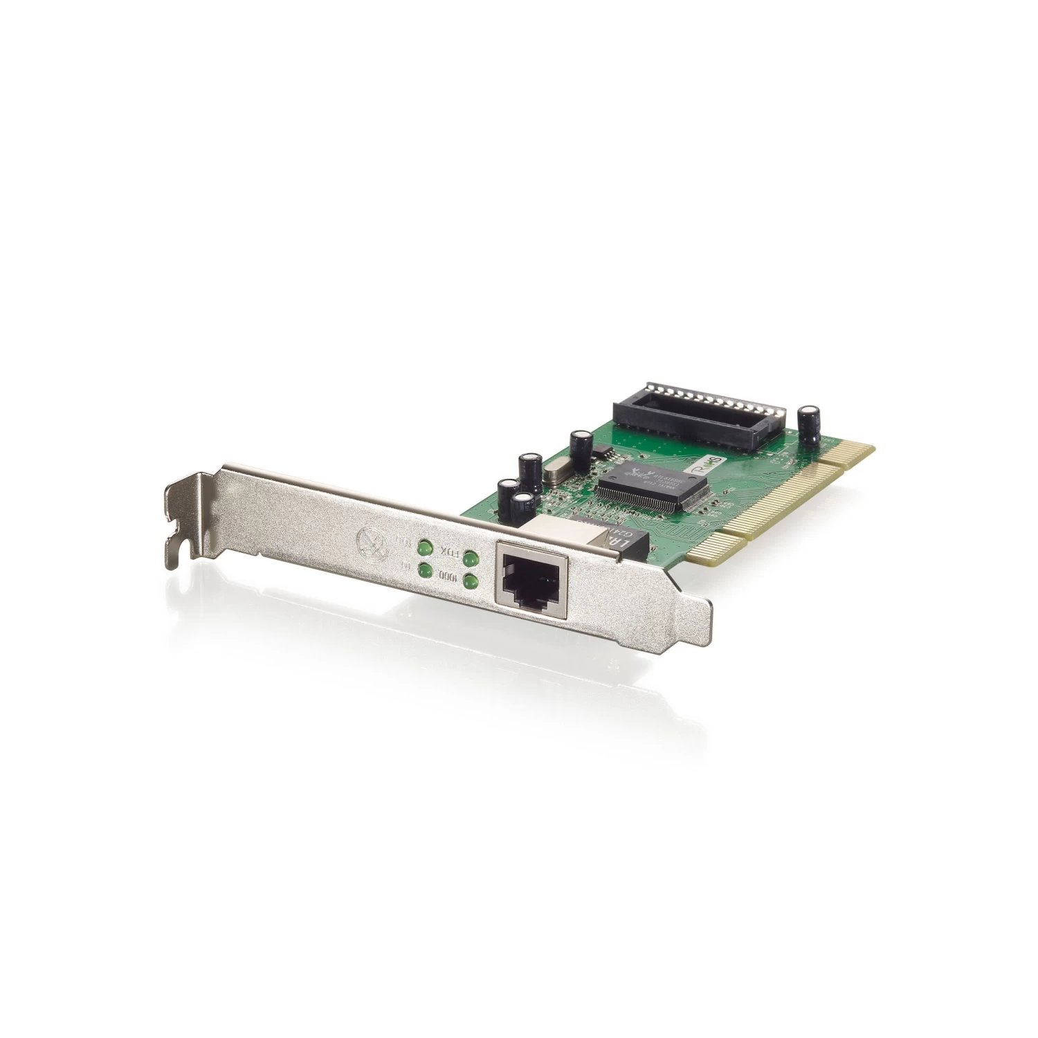 The GNC-0105 is a 32-Bit Gigabit Ethernet PCI Adapter for desktop computers. It supports 1000Mbps half-duplex and 2000Mbps full-duplex dataflow. This PC PCI expansion card features the Intel RC82540EM Chipset which supports most flavors of Windows, Linux, MS-DOS for boot disks, and more!
