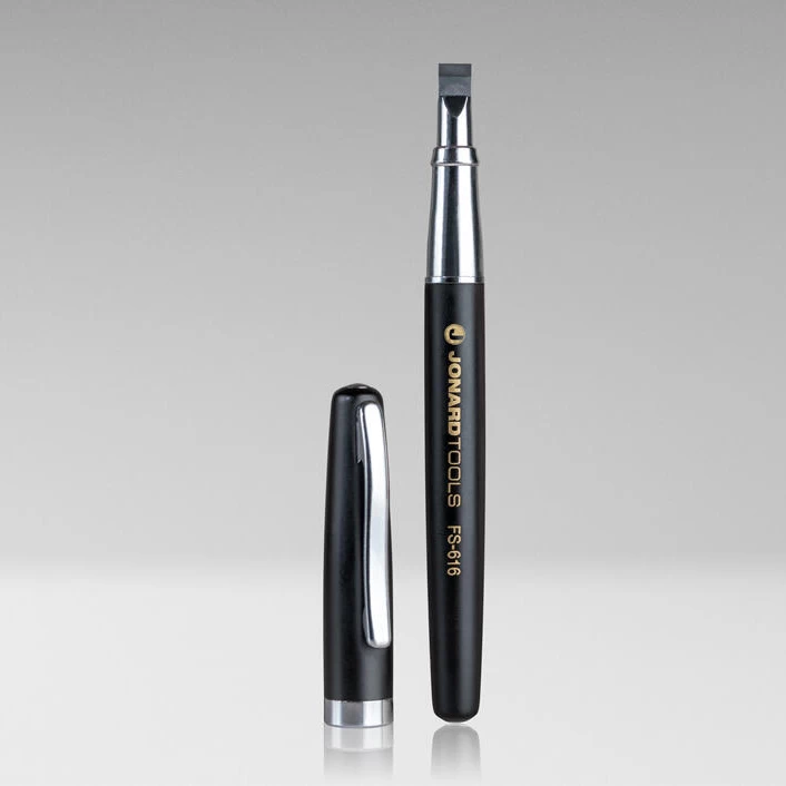 Designed with a 35° beveled edge and 6 mm wide carbide blade, this fiber optic scribe is the perfect tool for scribing optical fiber. This scribe features the following: