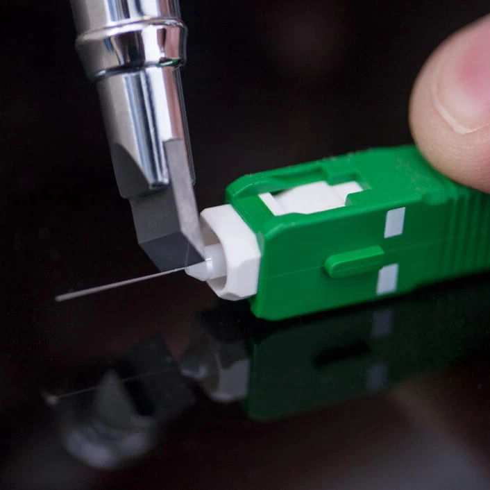 6 mm wide carbide steel blade can cleave large diameter fiber and miniature rod-shaped lenses