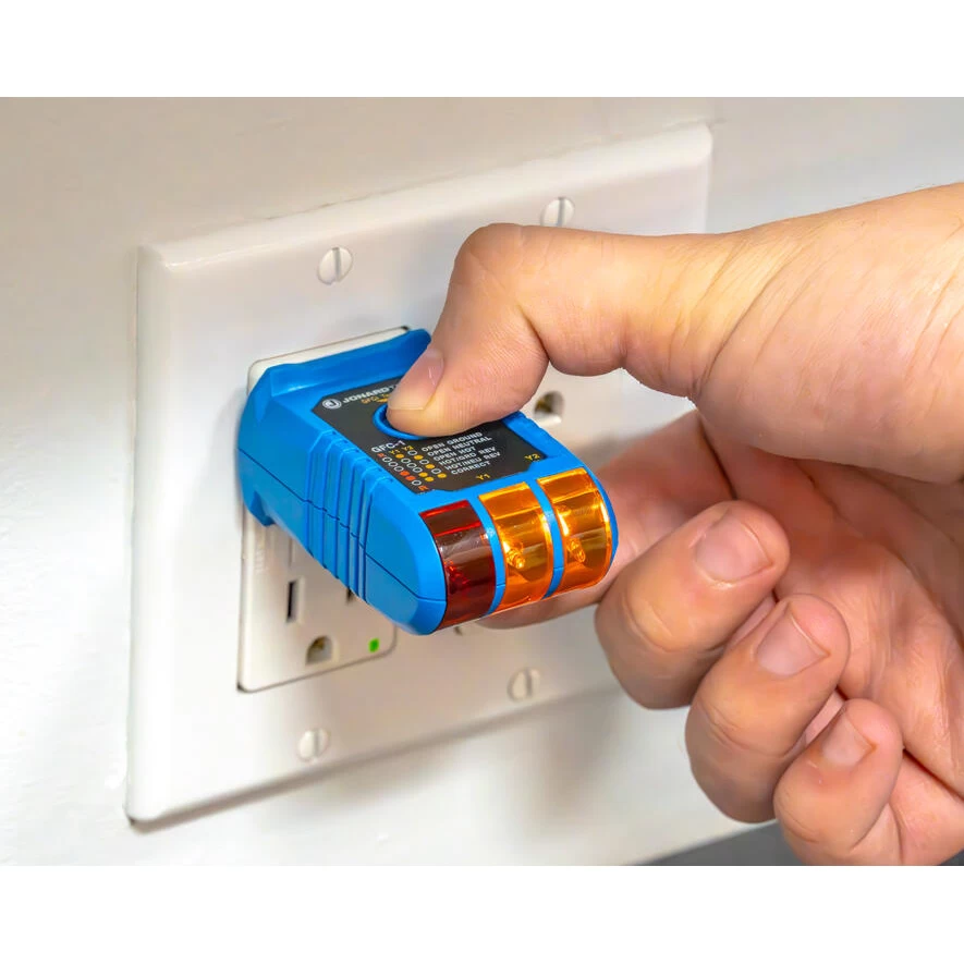 Jonard Tools GFCI Tester detects the most common wiring problems in standard and GFCI receptacles. This tester works on GFCI outlets and confirms operation of the ground fault protective device. The device has a durable, hard shell built to withstand a 6.6-foot (2m) drop. With easy to read lights this tester makes determining faults a breeze and the built in GFCI trip tests outlet protection.