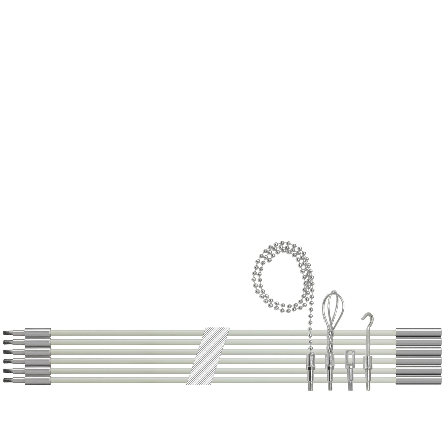 - Six 5′ long x 3/16″ diameter glow rods (30 ft long when assembled)