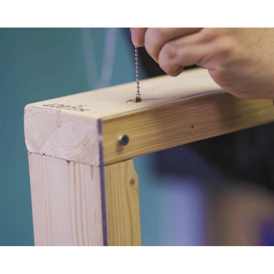 - 12′ reinforced steel ball chain prevents breakage from snags and snares, and navigates through walls with ease