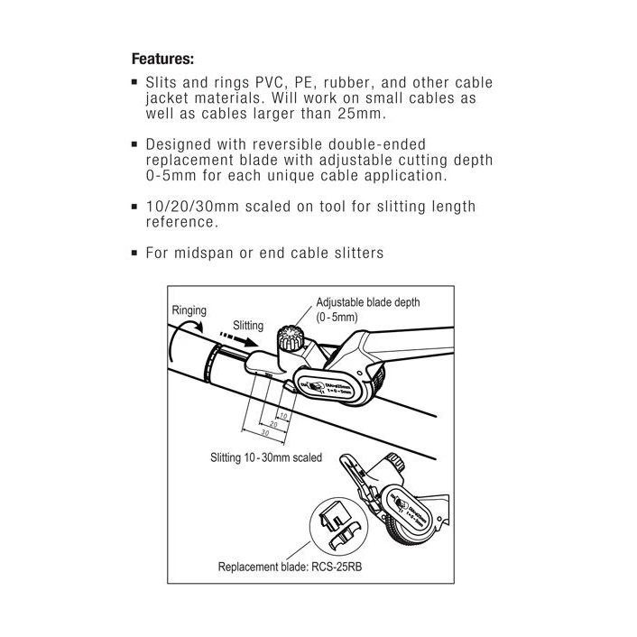 - Perfect for mid span or end cable slitting and ringing