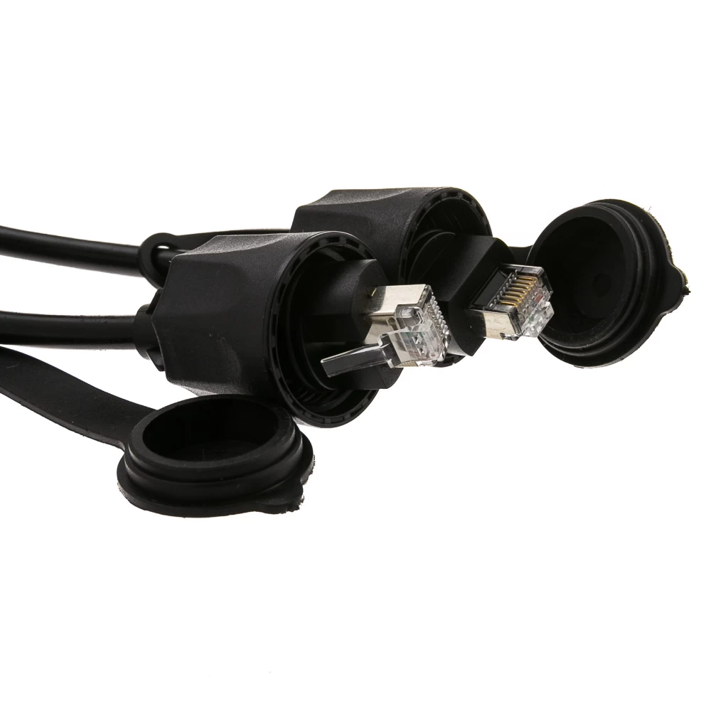 *** Please note that the waterproof hood around the rj45 end is designed to couple with 30X8-72000 or 30X8-73000 to create a weatherproof seal. Plugging this cable directly into a router or switch will block other ports