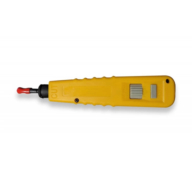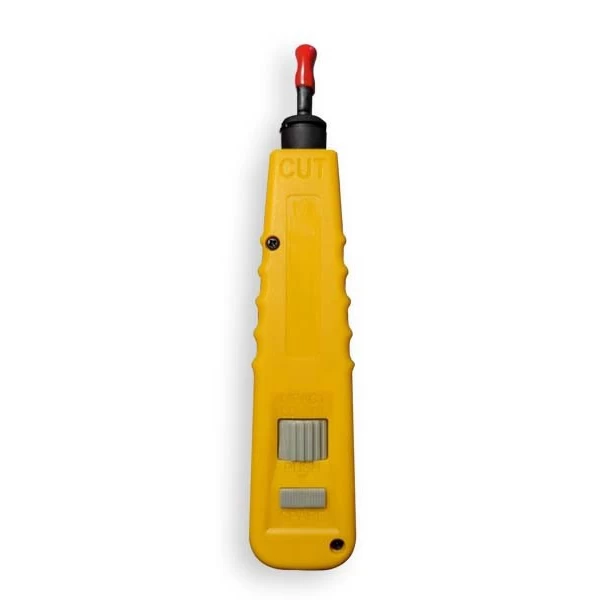 Our impact punch down tool is adjustable and features a dual use 66/110 blade powered by a spring-loaded mechanism for an easily for automatically triggered blade punch and cut. The impact force setting is adjustable (Low to High) for cable termination into blocks, jacks, patch panels, and more. Blades are interchangeable by way of an release button, this makes for a wide compatibility with different terminal blocks.