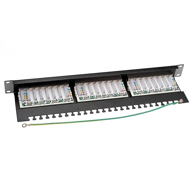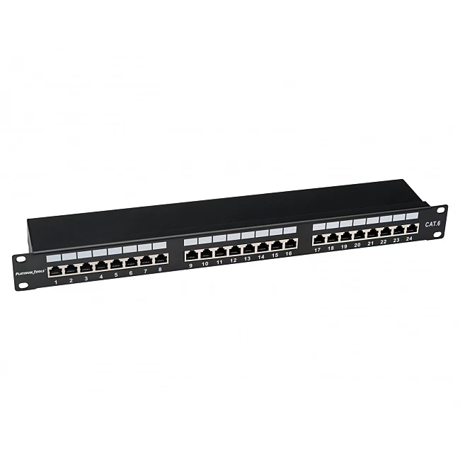 Platinum Tools Shielded Cat6 patch panel packs 24 ports into a 1U space and features a high strength frame for rigidity, built-in cable management. Each port features a shielded RJ45 to 110 type / Krone compatible punchdown on the back-end supporting both T568A and T568B wiring schemes. Supports solid or stranded wiring from 22 through 26 AWG.