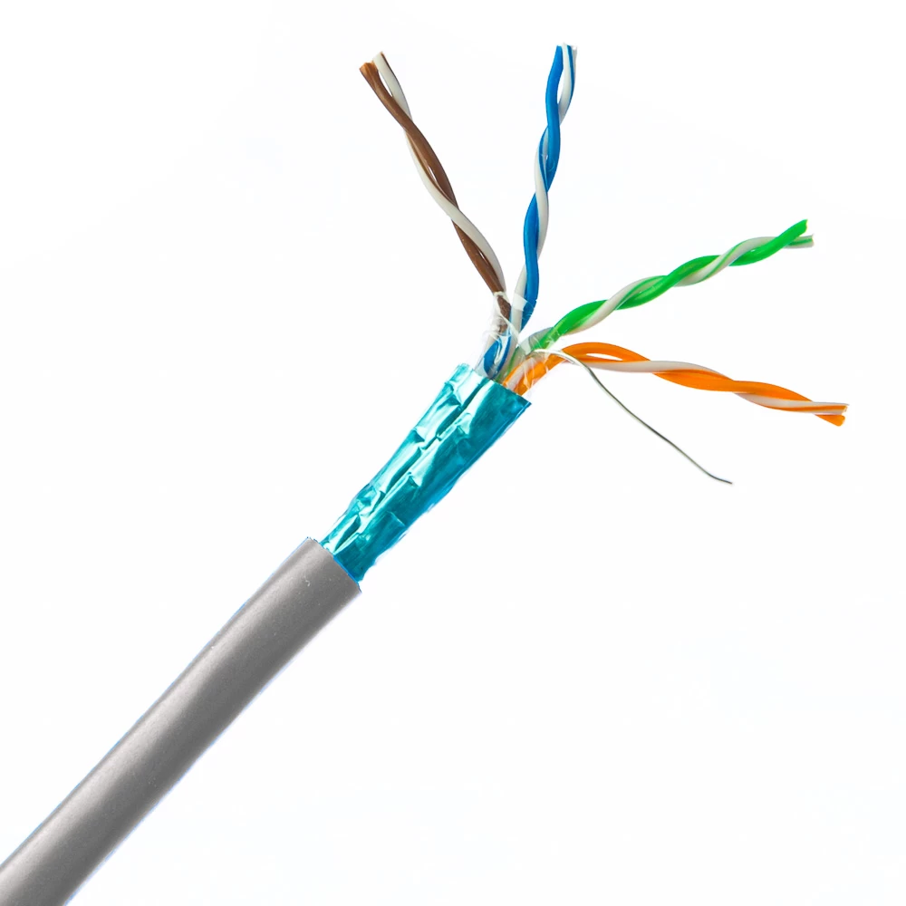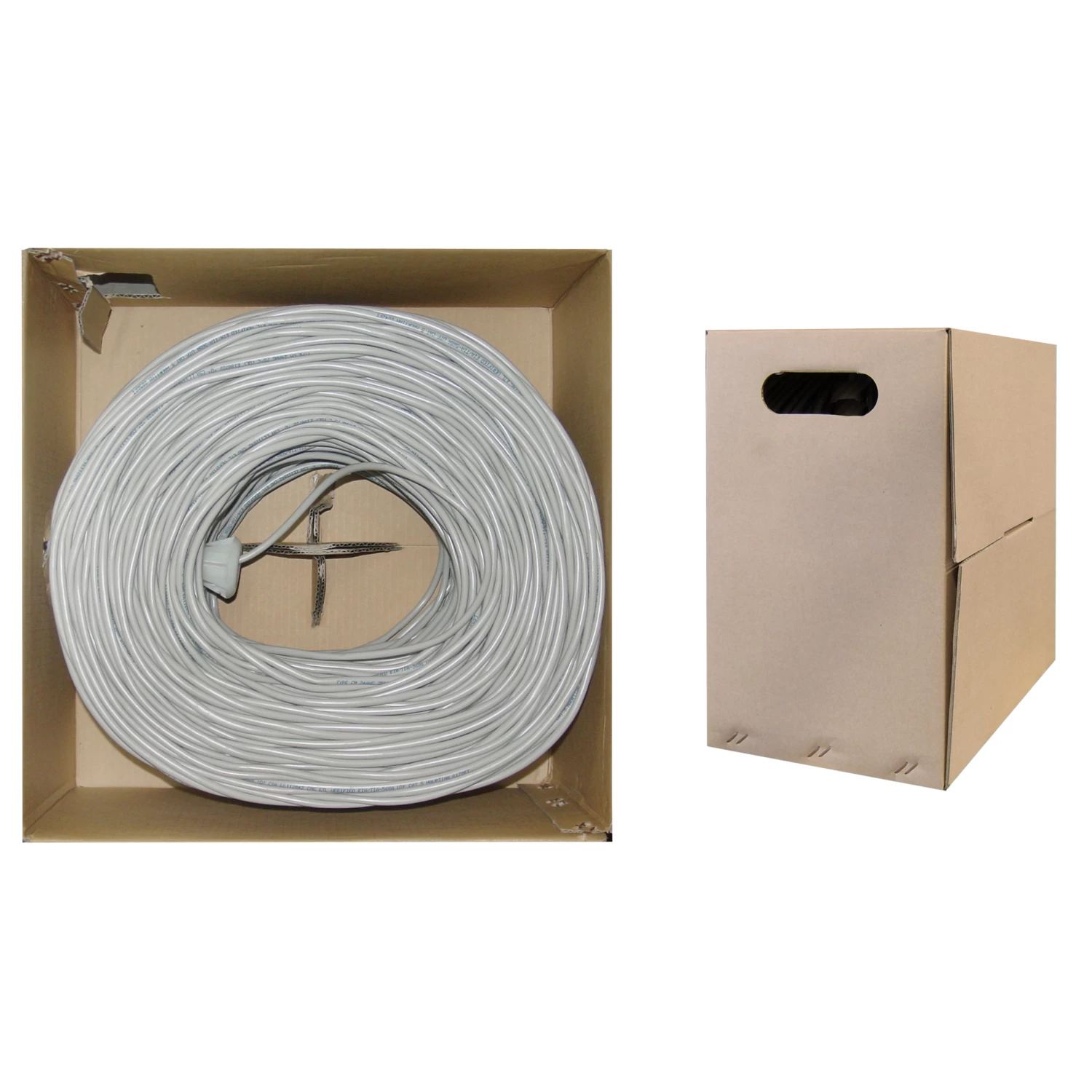 This 1,000-foot bulk Cat5e cable is conveniently offered in a pullbox, which adds to the convenience of storage and dispensing the cable as it is needed. This solid Cat5e cable’s conductors are constructed from 24 AWG (American wire gauge) solid bare copper, which provides for excellent conductivity. Our gray Cat5e cable is shielded with AL-foil/Mylar (0.030 x 17 mm), which allows for the conductors to retain a high-quality signal when passing near – or parallel to – high voltage or power cables, and eliminates cross-talk and interference. The outer PVC jacket provides optimal flexibility and has an average thickness of 0.55 mm. The durable PVC jacket also protects the conductors from environmental stressors and various conditions that can adversely affect the conductors’ performance.