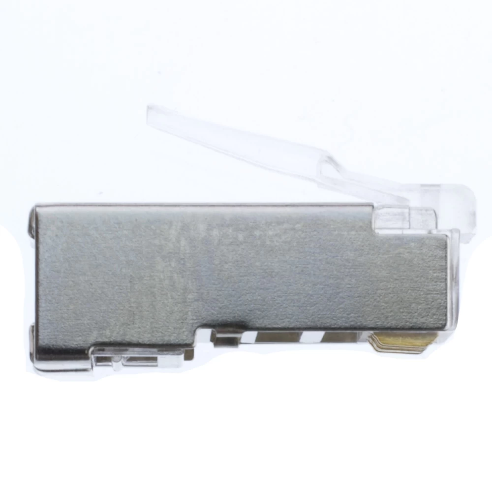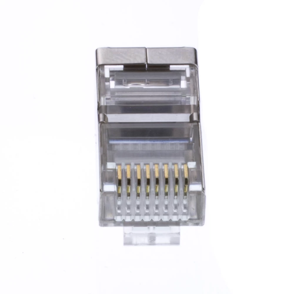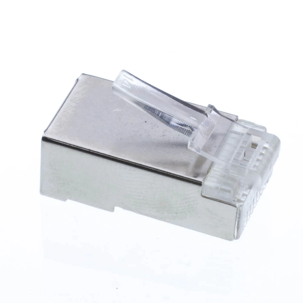 These crimp connectors are used to terminate a CAT-5 or CAT-5E cable. The connectors are shielded and come in a bag of 50 pieces.
