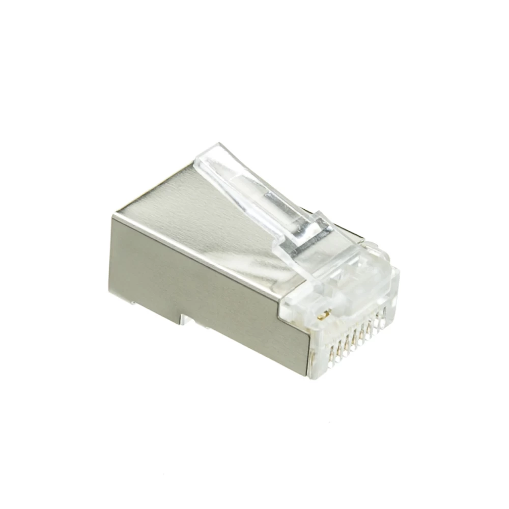 These Shielded Cat6 Crimp Connectors for Stranded Cables come in bags of 100 pieces and come with guides.