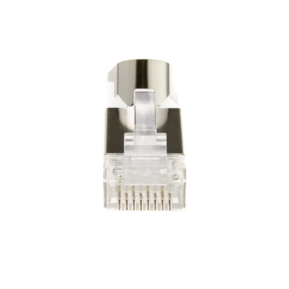 Platinum Tools shielded Cat6a RJ45 Crimp Connectors are designed for use with solid shielded Cat6a cable. So when you are ready to deploy a shielded 10 Gigabit network or merely the infrastructure for one look no further. These connectors are composed of two pieces, the RJ45 modular plug and a wire guide insert which helps keep the individual conductors in the appropriate alignment.