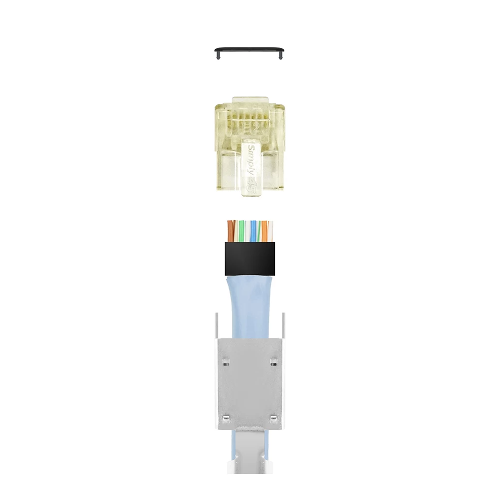 Simply45 RJ45 ends for Cat7a/7/6a networking are used for crimping and terminating Gigabit Ethernet cables. These 8P8C connectors can be used for solid or stranded cable applications on internet and phone networks. Simply45 Cat7a/7/6a crimp connectors have gold-plated contacts that give you a solid, corrosion-free connection for life. Ordering RJ45 connectors in bulk from CableWholesale means you will have enough to set up or modify your infrastructure. We have a full lifetime warranty on these cat7a/7/6a tips with full support from our knowledgeable team.